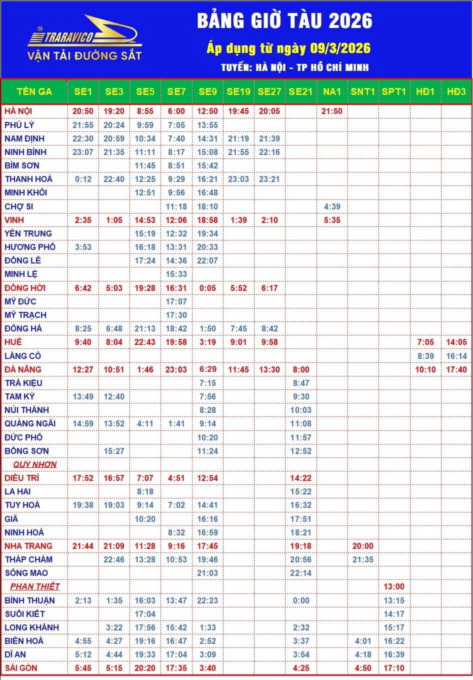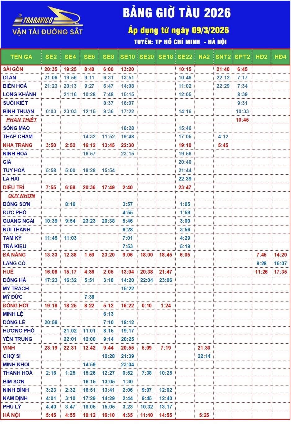 […] 2025年11月版ベトナム統一鉄道サイゴン駅とハノイ駅発時刻表 […]