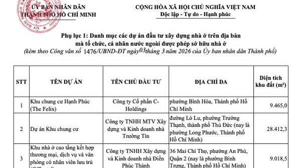 2026年3月3日、ホーチミン市人民委員会は「外国人の所有が許可された24のプロジェクト」を正式に発表しました 。このリスト(公文書番号:1476/UBND-ĐT)に掲載されている物件は、住宅法に基づき国防・安全保障上の問題がないと確認された「政府公認」の物件です 。