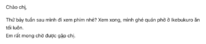 “Chào chị, thứ bảy tuần sau mình đi…”(親しみやすく、かつ敬意がある自然な表現)