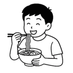 A. Bé đang ăn phở.