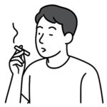 B. Anh ấy đang hút thuốc.