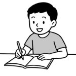 B. Cậu bé đang học bài.